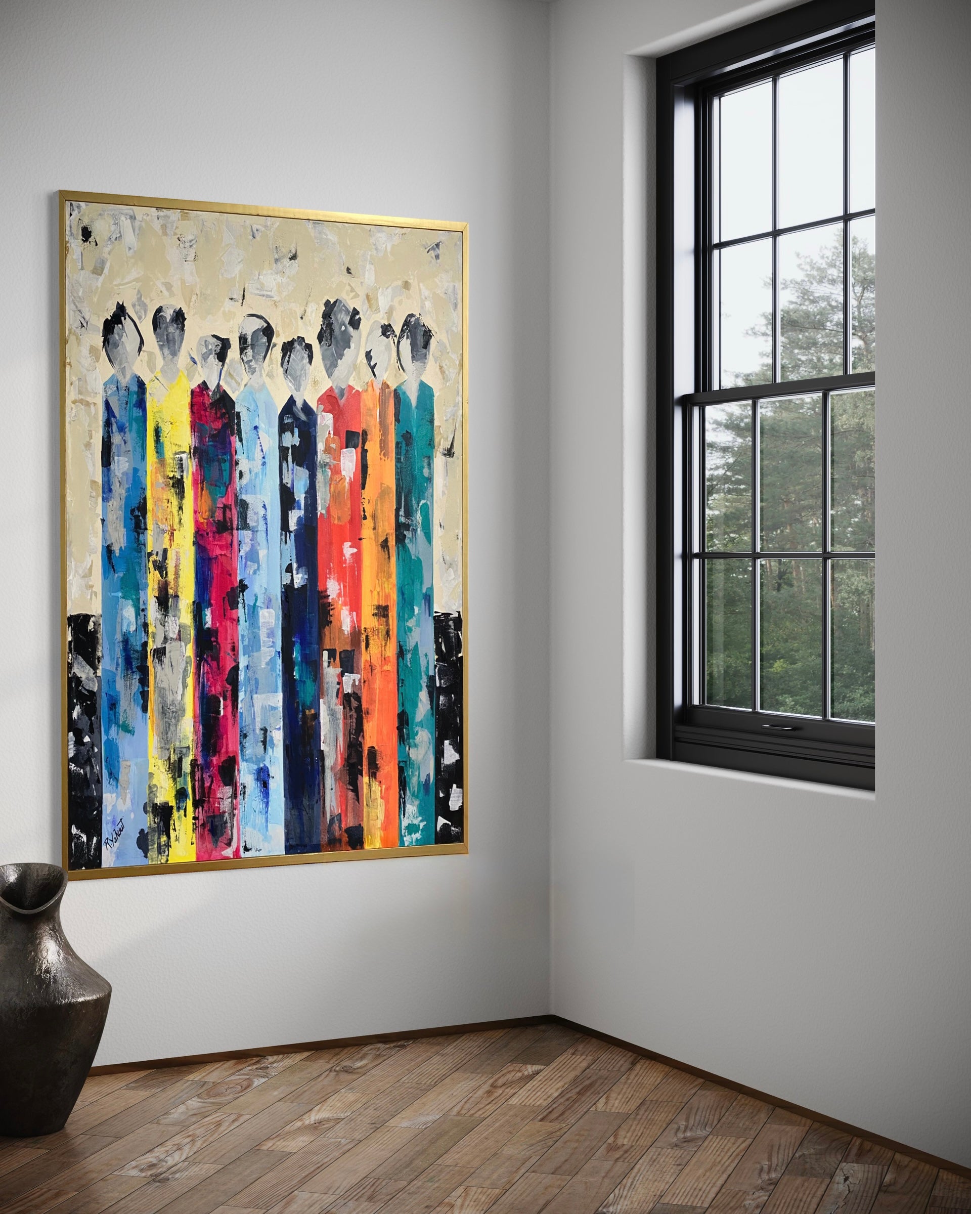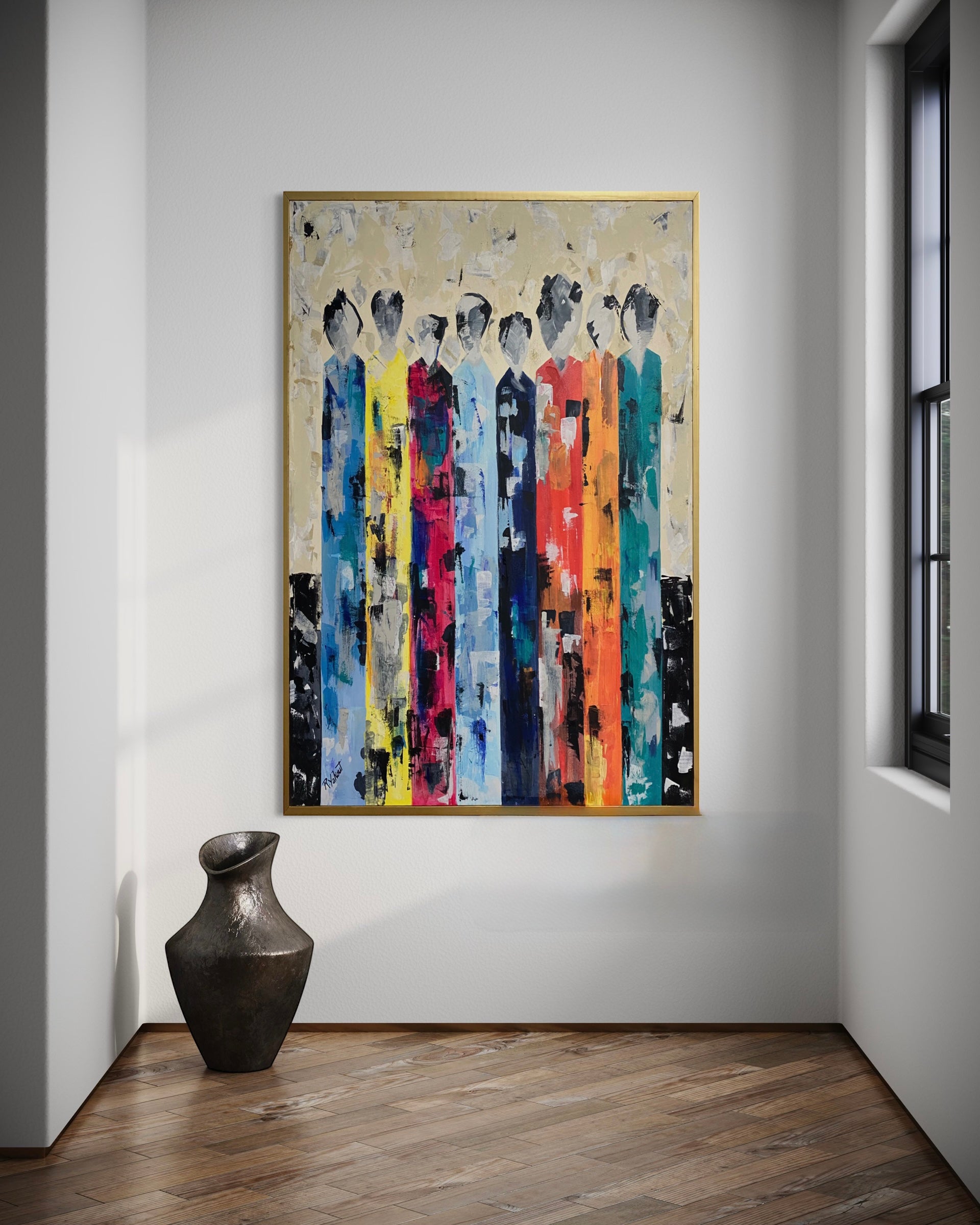 The artwork reflects how each figure carries a unique vibrancy yet stands together in harmony, like a chorus of colors forming a collective presence.
