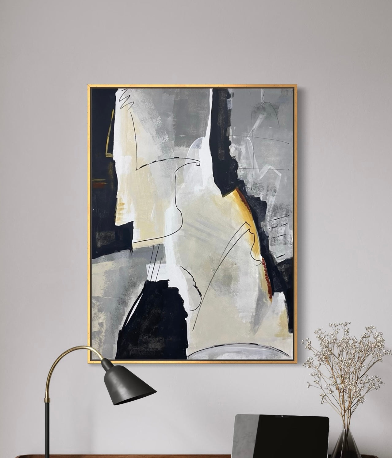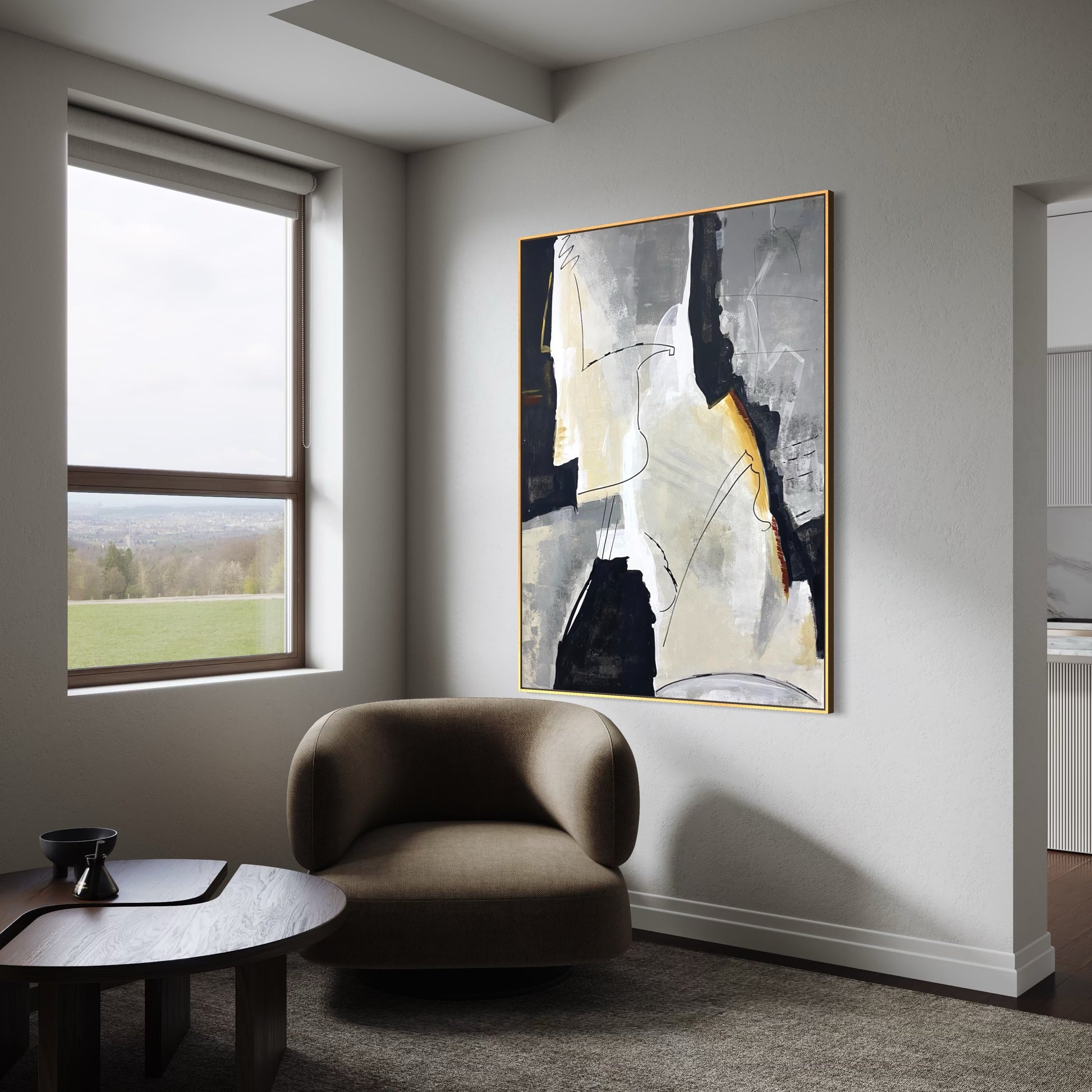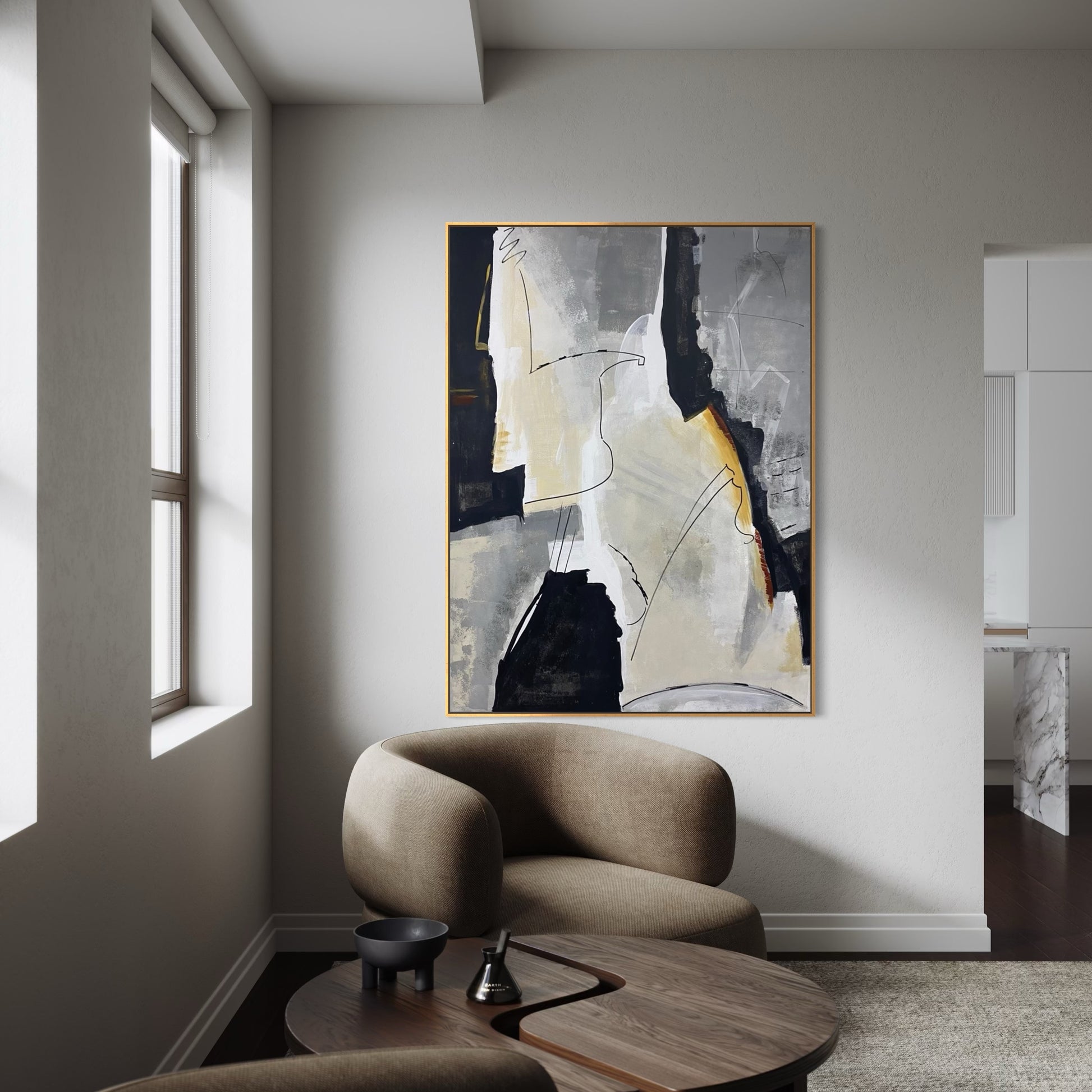 an abstract composition that captures the quiet tension between light and shadow. Soft neutral tones, layered brushstrokes, and fluid lines create a sense of calm introspection. This painting invites the viewer to pause, reflect, and find harmony within contrast — a refined statement piece for modern and minimalist interiors.
