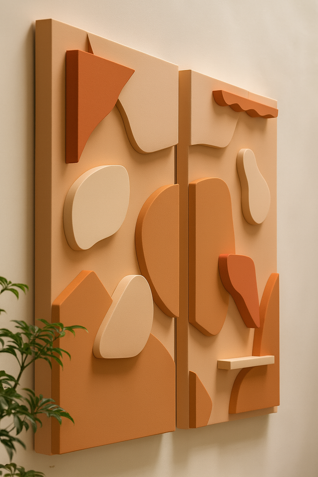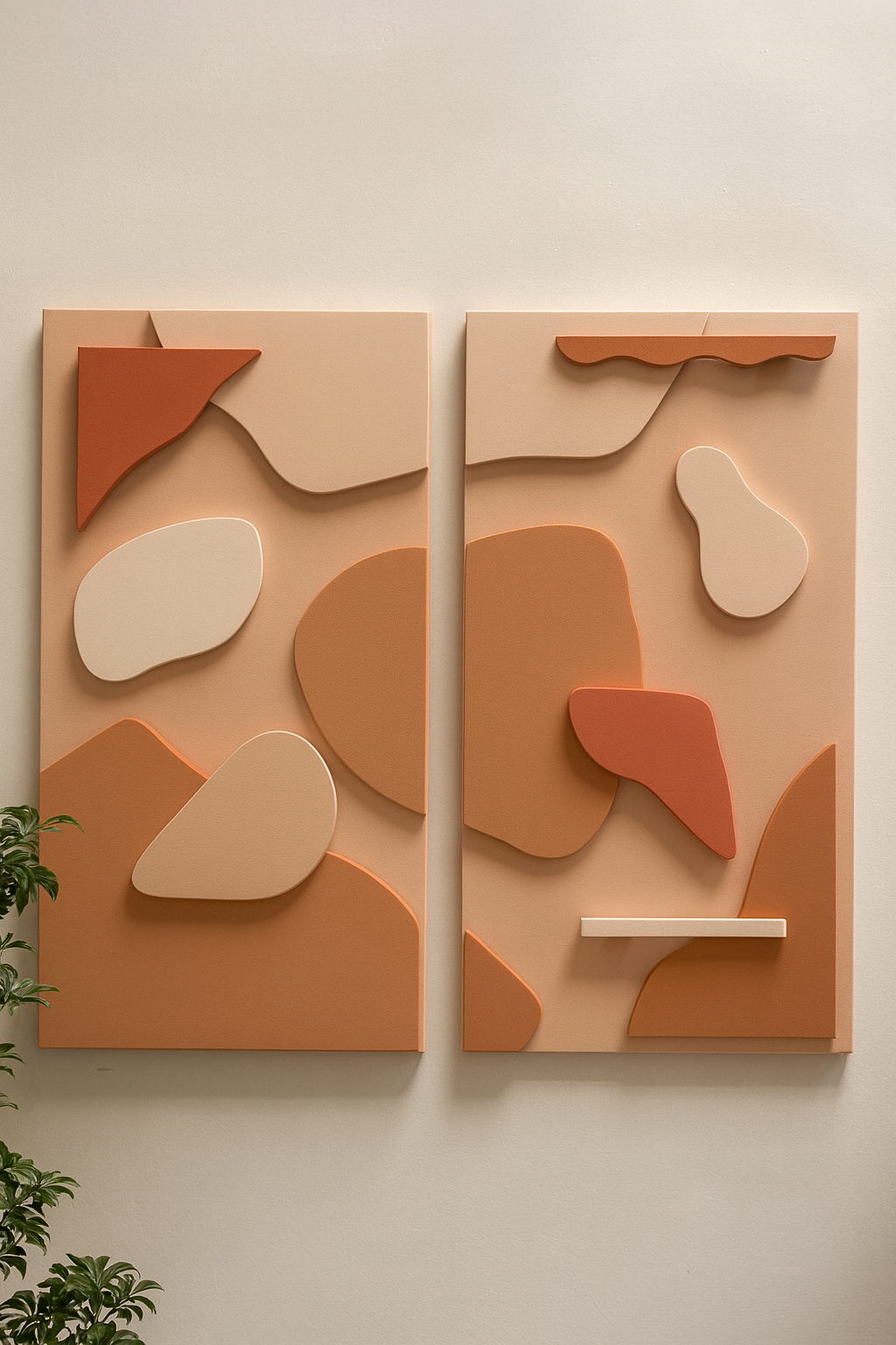 a contemporary abstract wall art piece featuring soft organic forms in smooth pastel tones. With its balanced shapes and serene color palette, this artwork brings a sense of calm sophistication to any modern interior, making it a perfect statement for living rooms, offices, or curated gallery spaces.