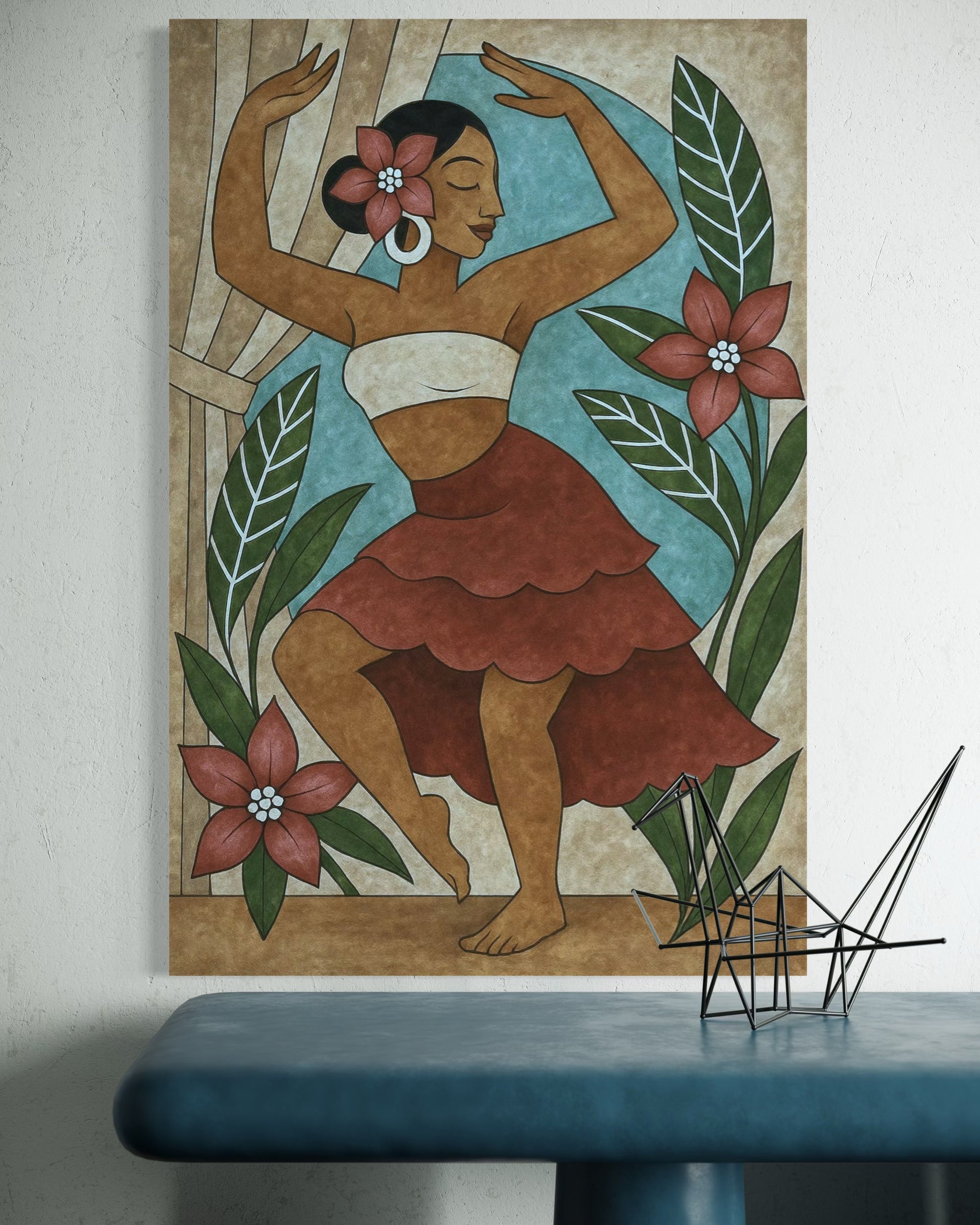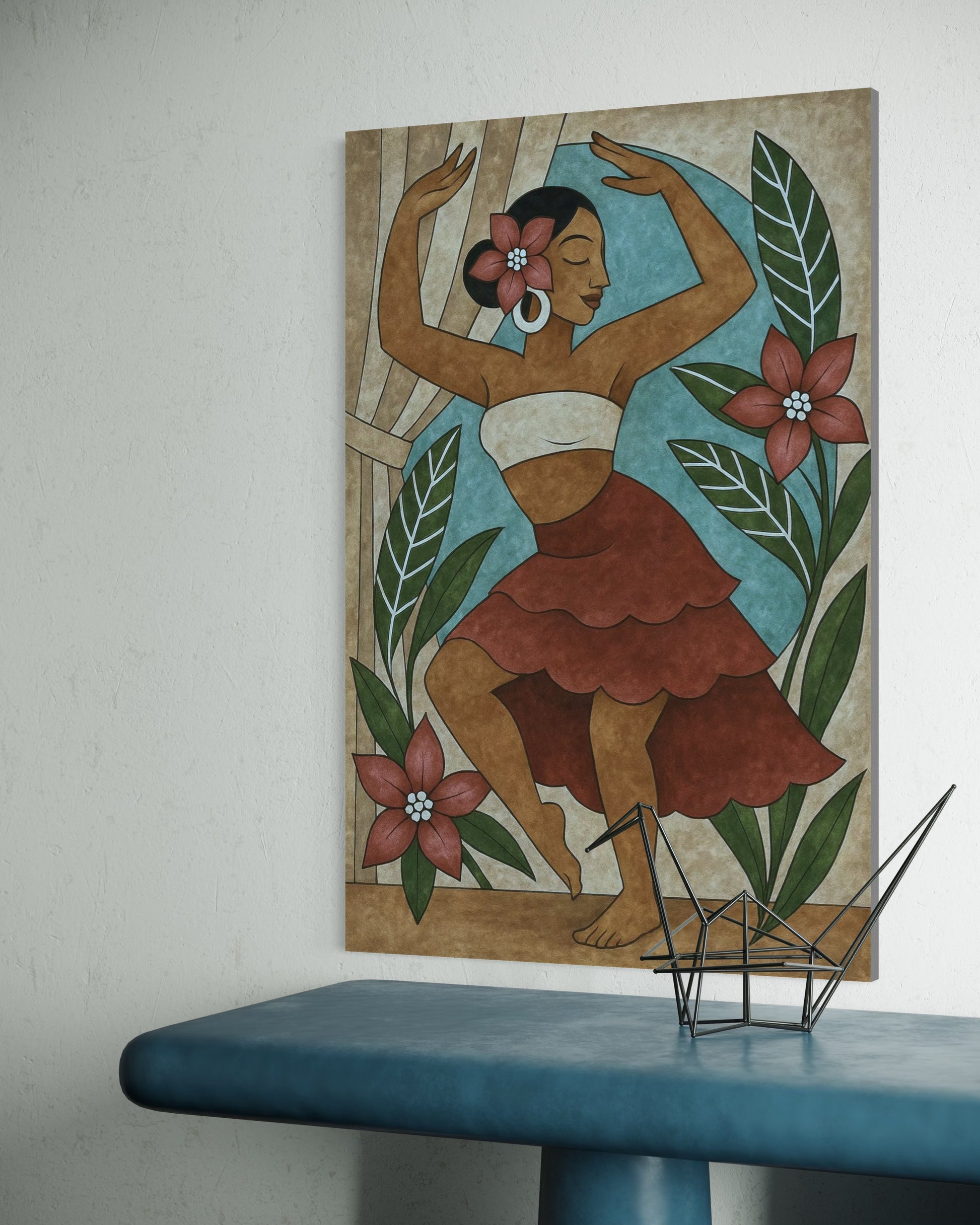 A vibrant fusion of motion and emotion, The Scarlet Rhythms captures a dancer suspended between passion and stillness. Bold crimson tones flow against a turquoise backdrop, while textured brushstrokes echo the rhythm of unseen music. Inspired by Mohamed Sabry’s expressive energy and Shorouk Yakout’s cubist elegance, this piece celebrates movement as poetry — where color becomes sound, and form becomes feeling.
