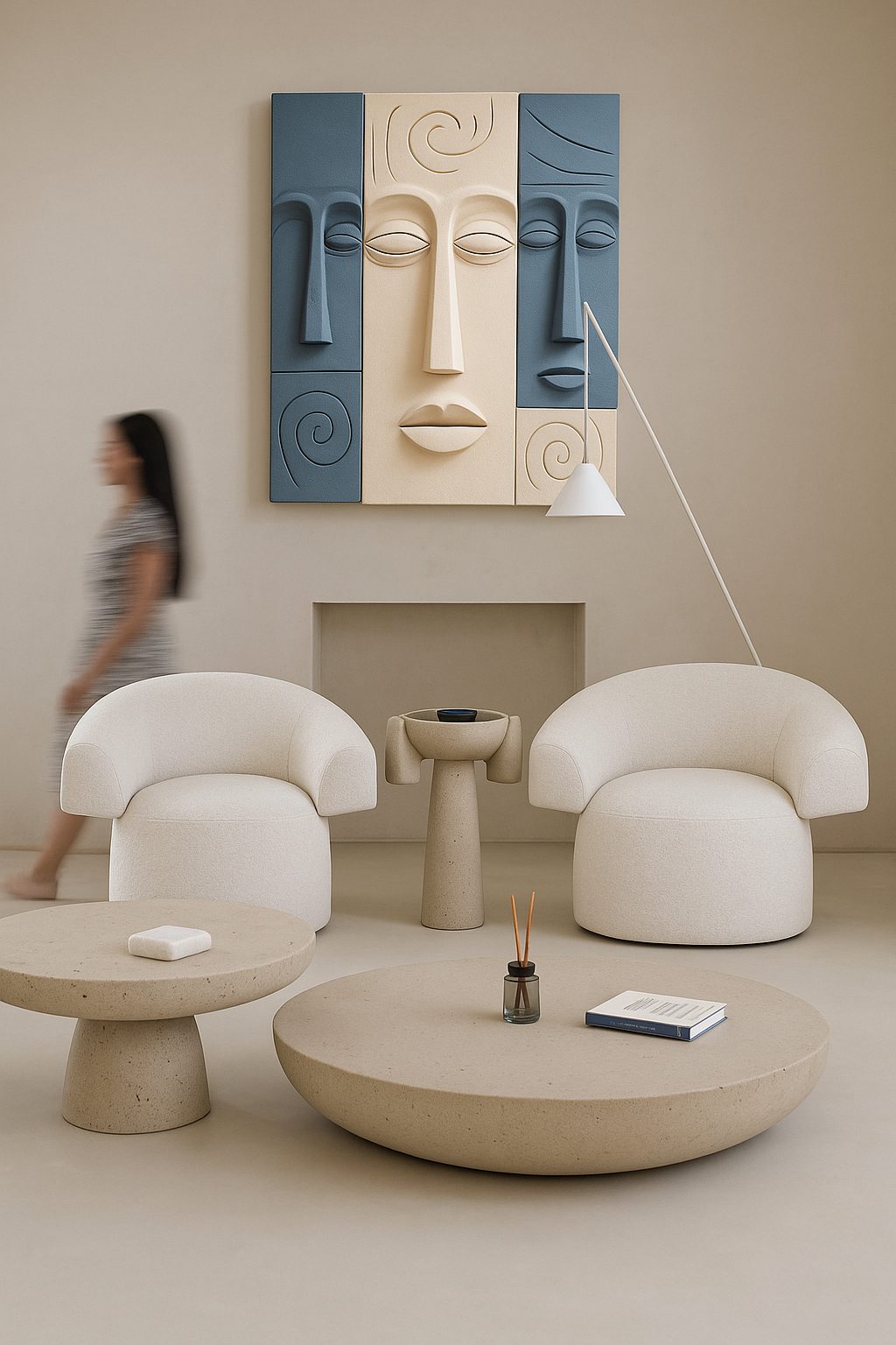 •the artwork symbolises the calm, abstracted faces merging into one unified composition, as if each panel carries a quiet voice within the whole.